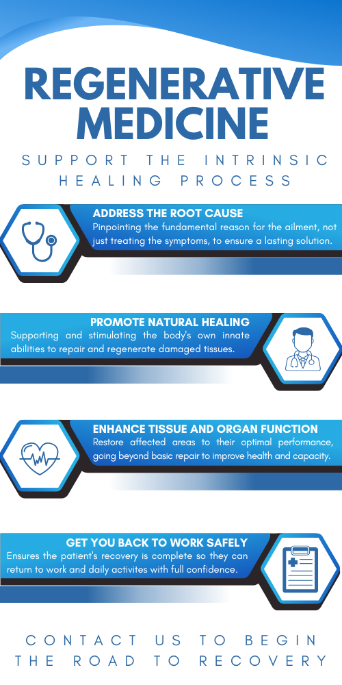 Get You Back to Work Safely: Regenerative treatments are minimally invasive and can help you avoid more extensive procedures, leading to a faster and safer return to your job.